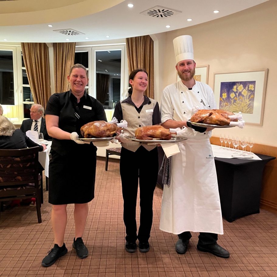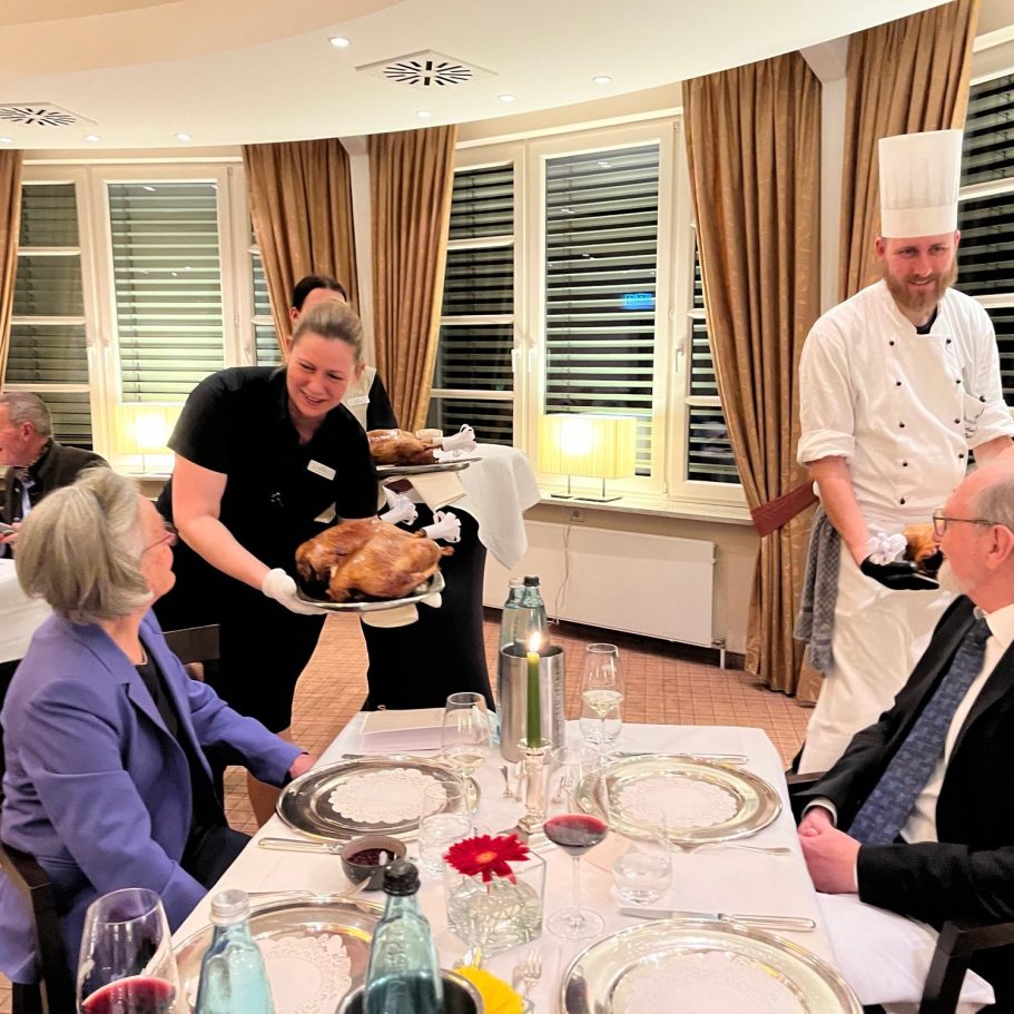 Apfel-Selleriesuppe, Gänsebraten und Joghurtcreme rundeten den vergnüglichen Abend im Waldschlösschen ab.